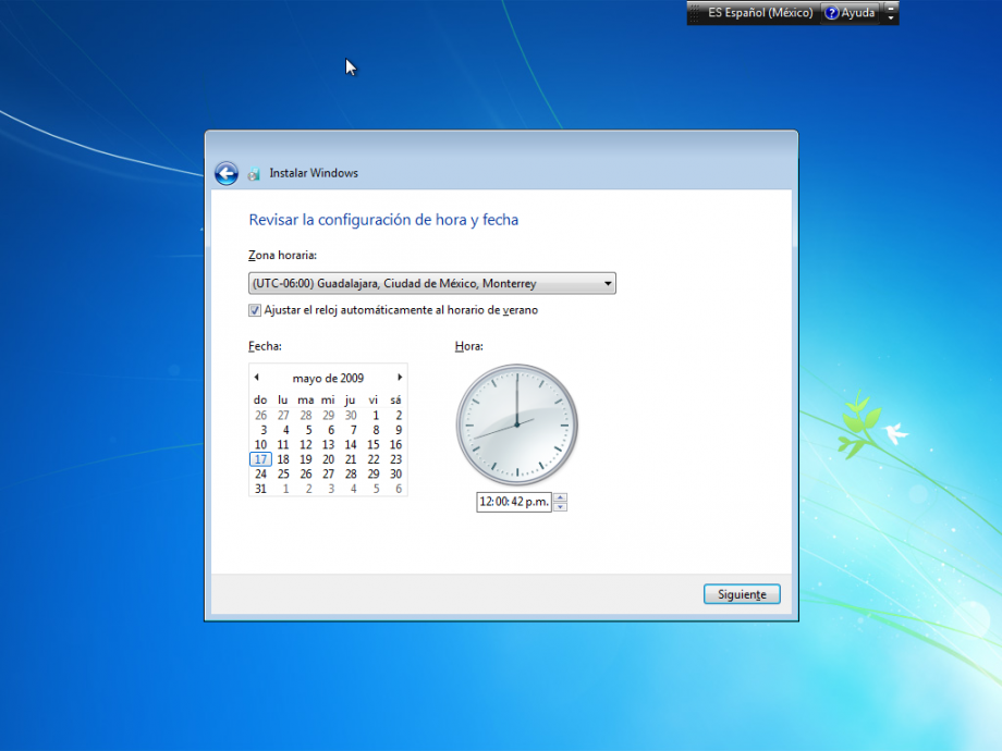 - Espera a que se cargue la interfaz de la instalación y cuando haya cargado te preguntará el idioma que deseas instalar, el formato de la hora y la moneda dependiendo de tu país y el tipo de teclado que tienes y das click en siguiente.